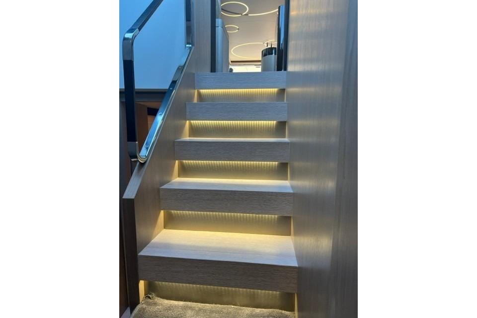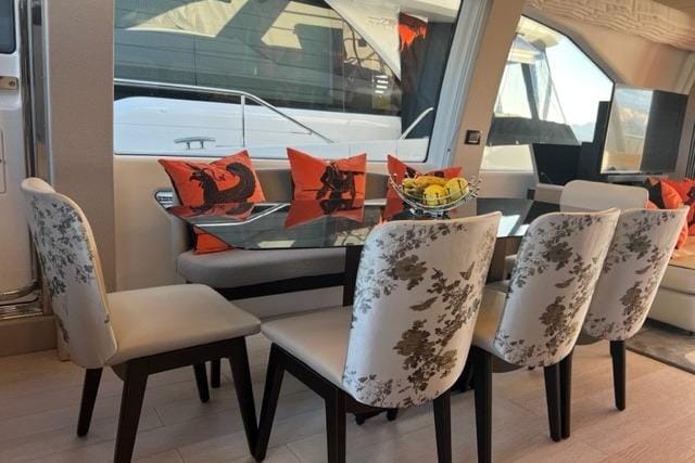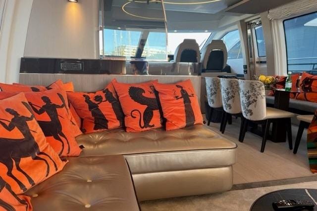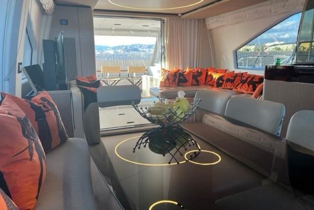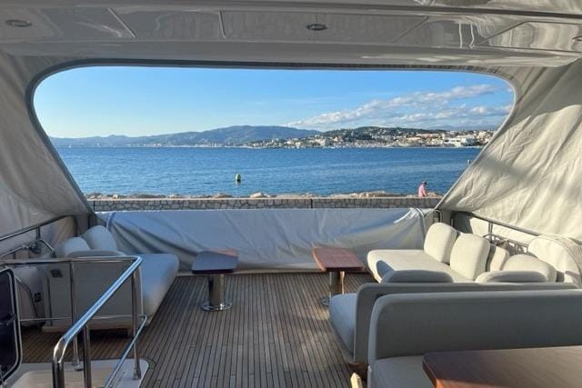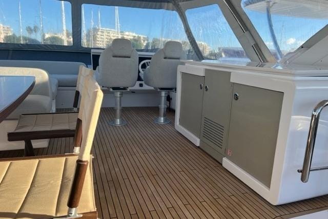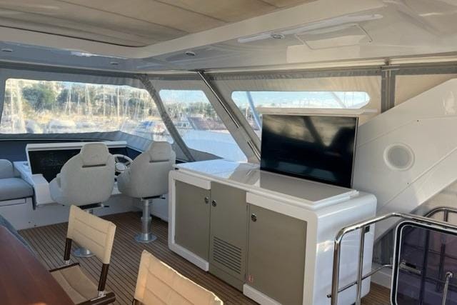 With full leather upholstery, seven TVs, Bose hi-fi, air conditioning throughout, and complete winter tarps for both flybridge and cockpit, she is fully equipped for year-round cruising. A 1-year warranty is available and there is the possibility to take over an existing lease at very favourable pre-2022 rates.