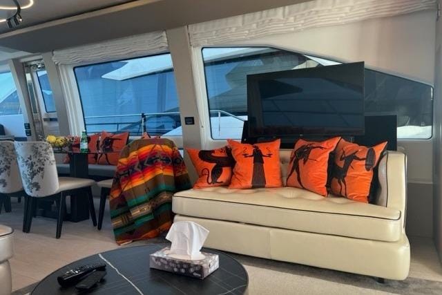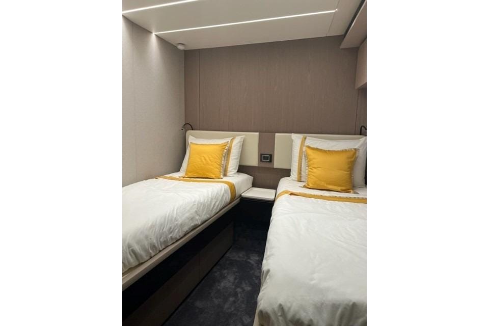 • 7 TVs in total (4 cabins, 1 crew cabin, 1 lounge, 1 flybridge)