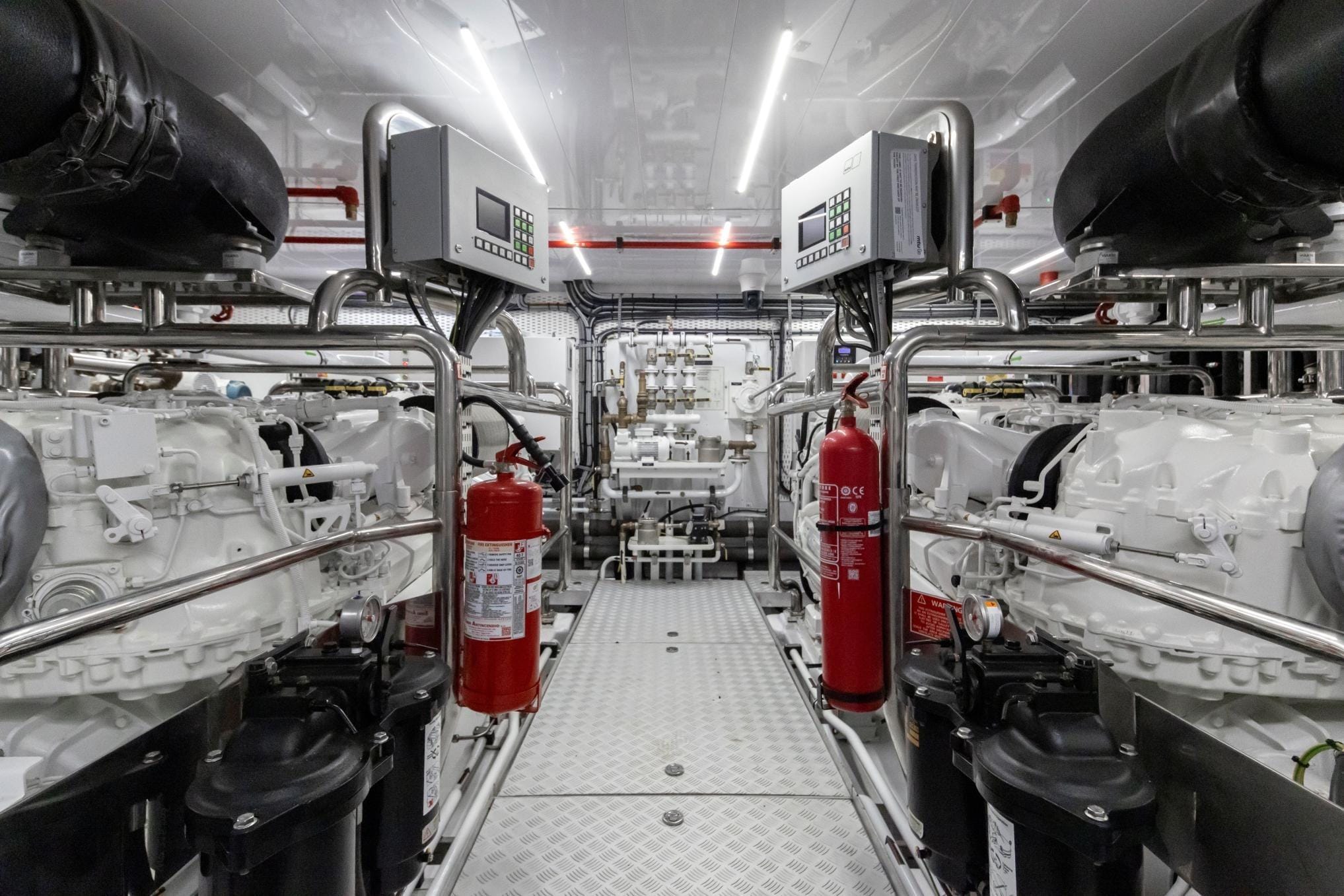 She features an extensive extras list including upgraded engines, upgraded generators, extra sound proofing throughout, the top tier navigation package, dual watermakers and extensive interior design upgrades across all areas of the yacht.
