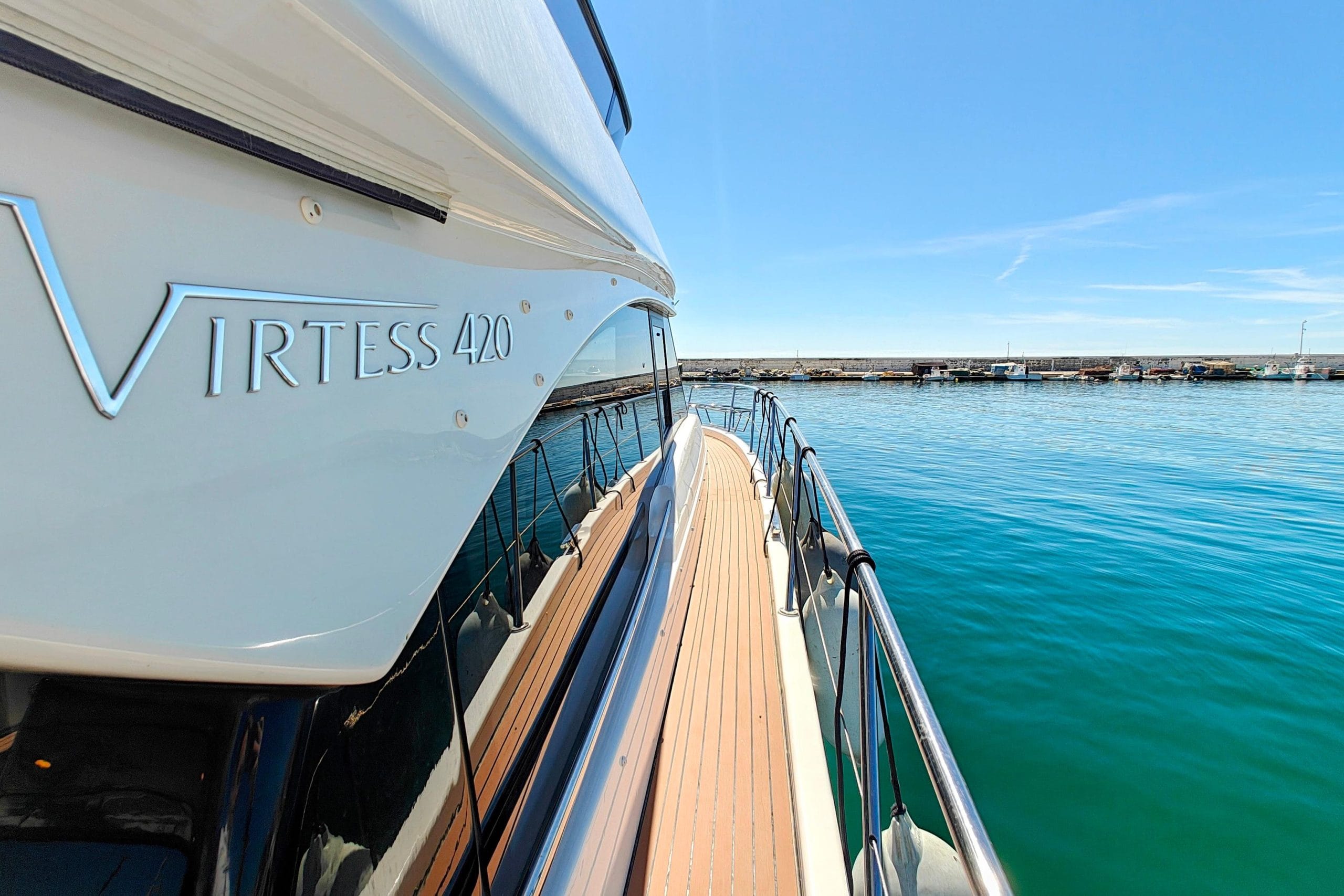 An outstanding opportunity to own this virtually new Bavaria Virtess 420 Fly, this yacht is absolutely packed with features including the innovative convertible cockpit area which can be either a full dining cockpit or an open beach area. She is in impeccable condition, having only been used a handful of times while benefitting from full time maintenance and care.