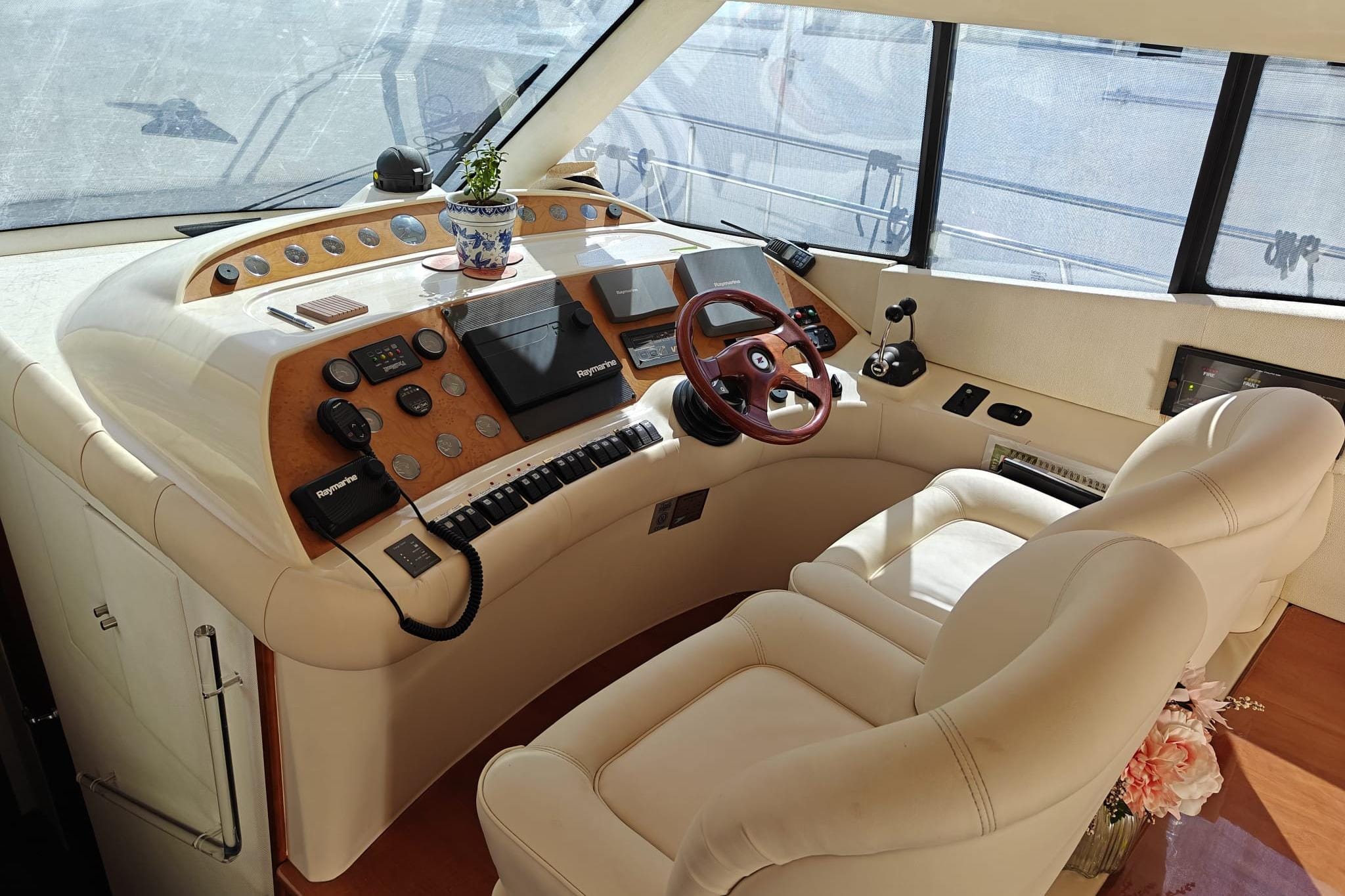 Both helm stations are exceptionally well equipped with modern Raymarine systems.