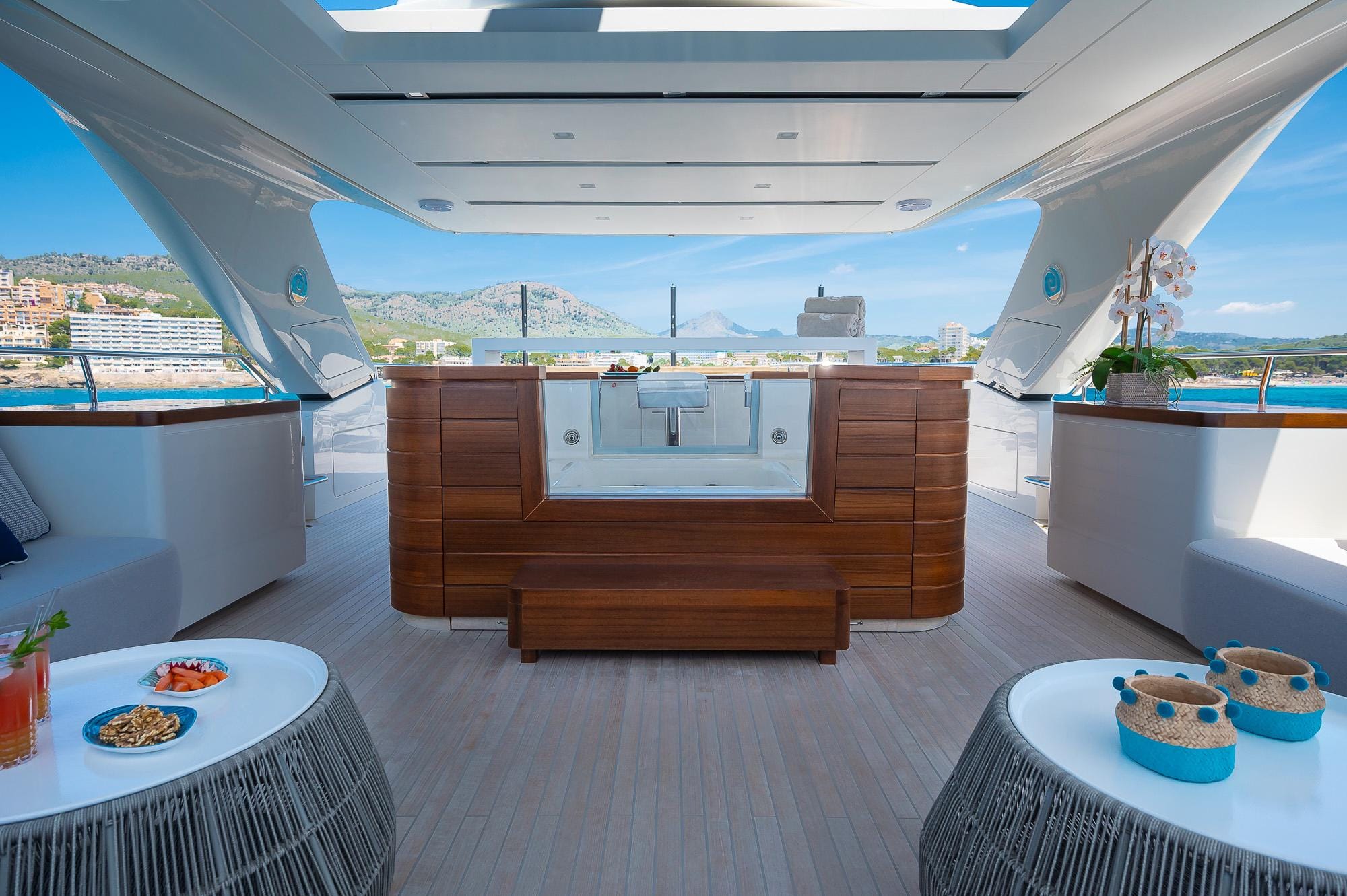 • Custom made bar cabinet in the upper deck cockpit including sink and faucet (diff. from STD)