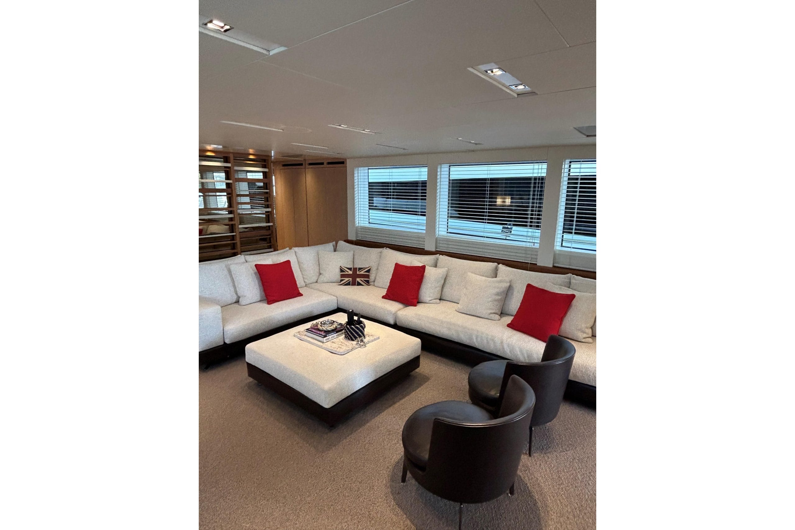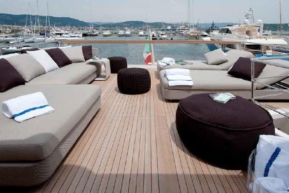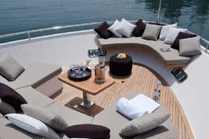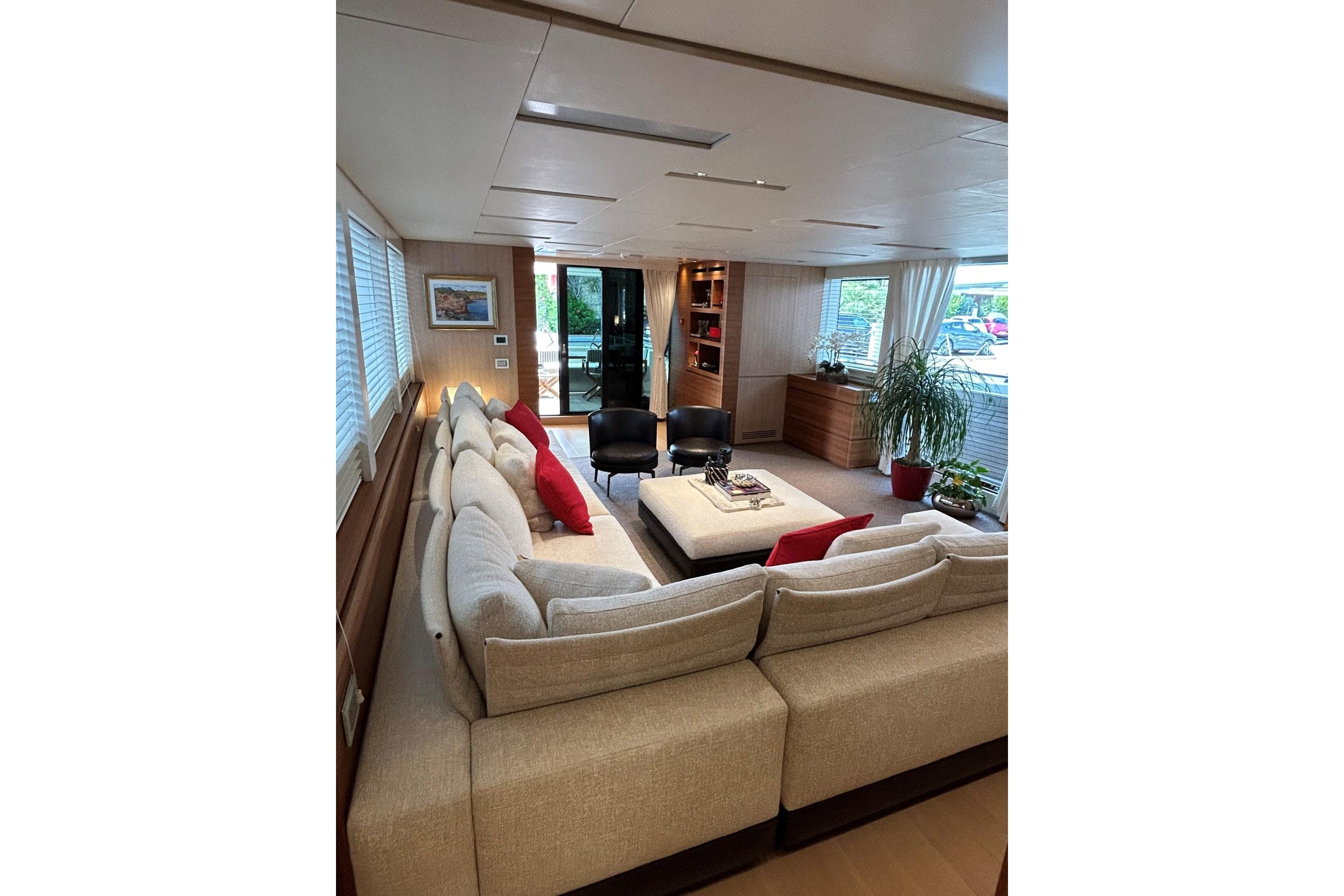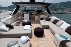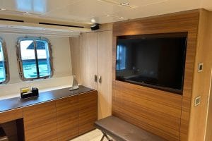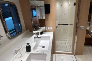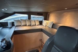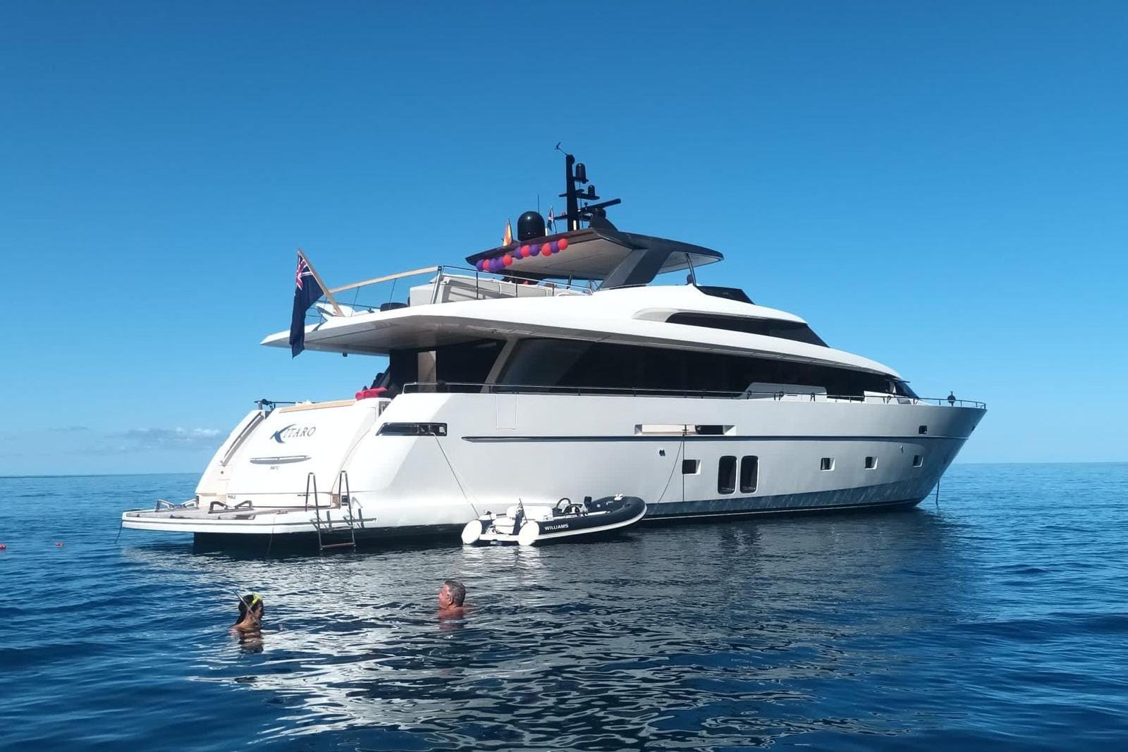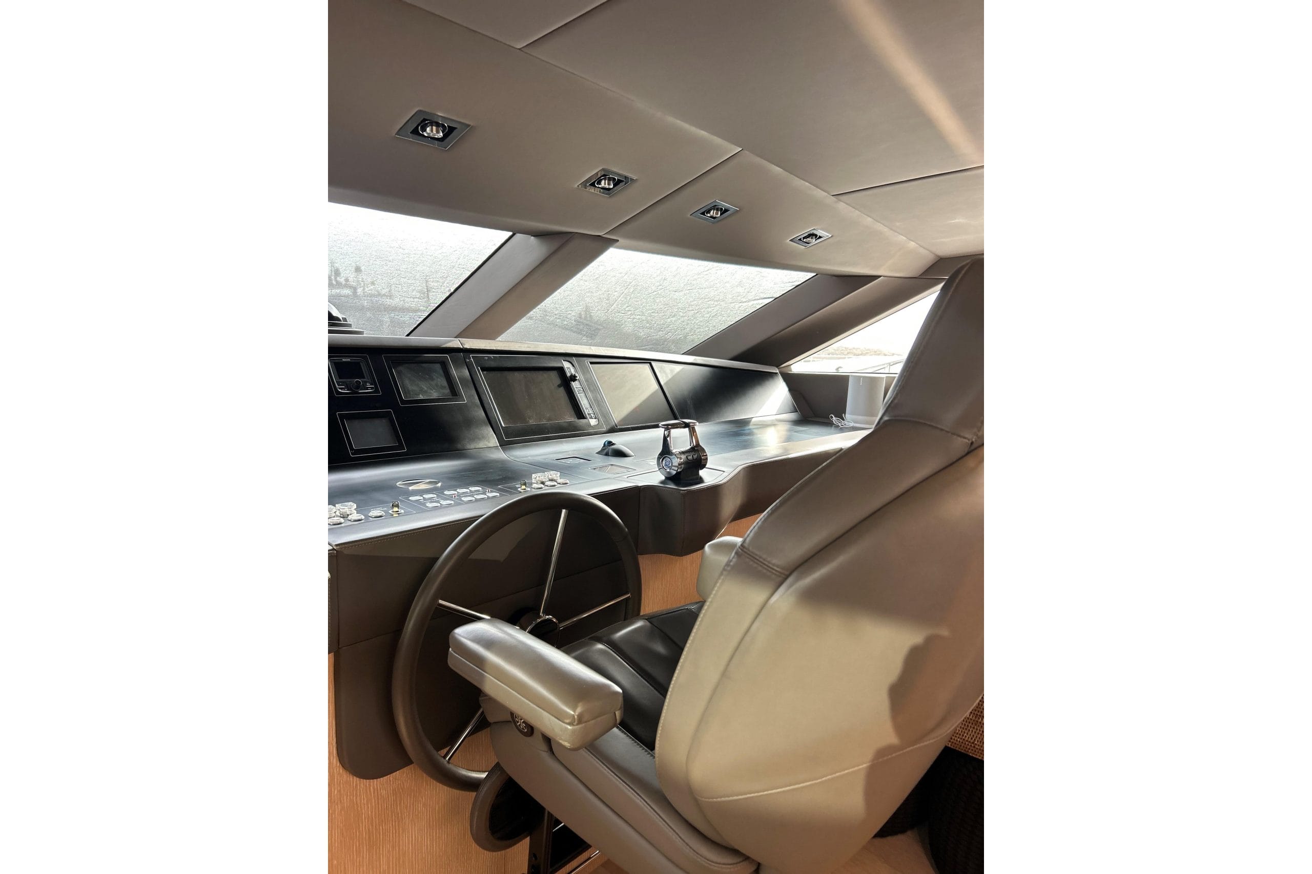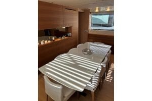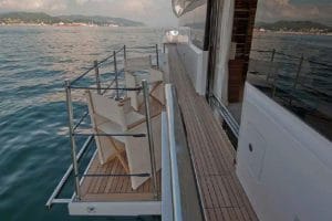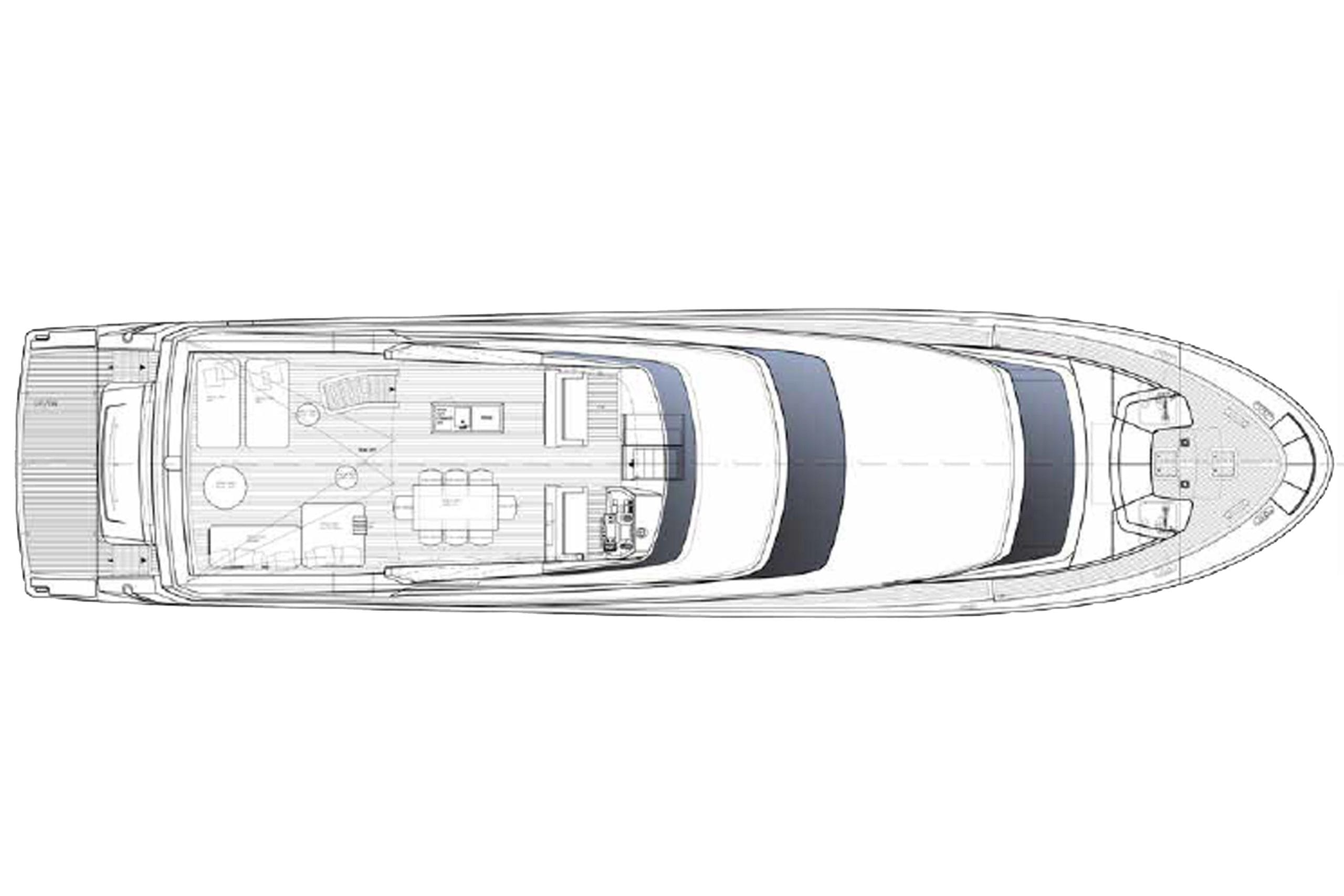 She is fully equipped to an exceptionally high level, including an opening side terrace, fully equipped Boffi flybridge galley, CMC zero-speed and underway stabilizers, and a hydraulic swim platform, delivering outstanding comfort both at anchor and underway.
